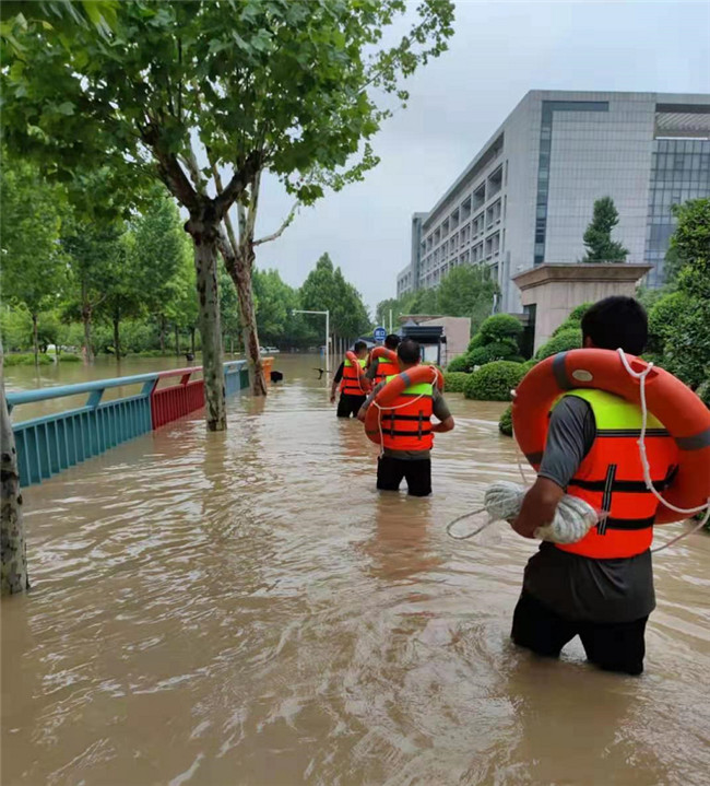 最終在應(yīng)急救援隊(duì)和學(xué)校救援隊(duì)的努力下,順利將被困教職工全部救出。體育部教師駕駛槳板也參與救援。學(xué)校保衛(wèi)處同事還和藍(lán)天救援隊(duì)的隊(duì)員一起,及時(shí)解救了不少被困群眾。