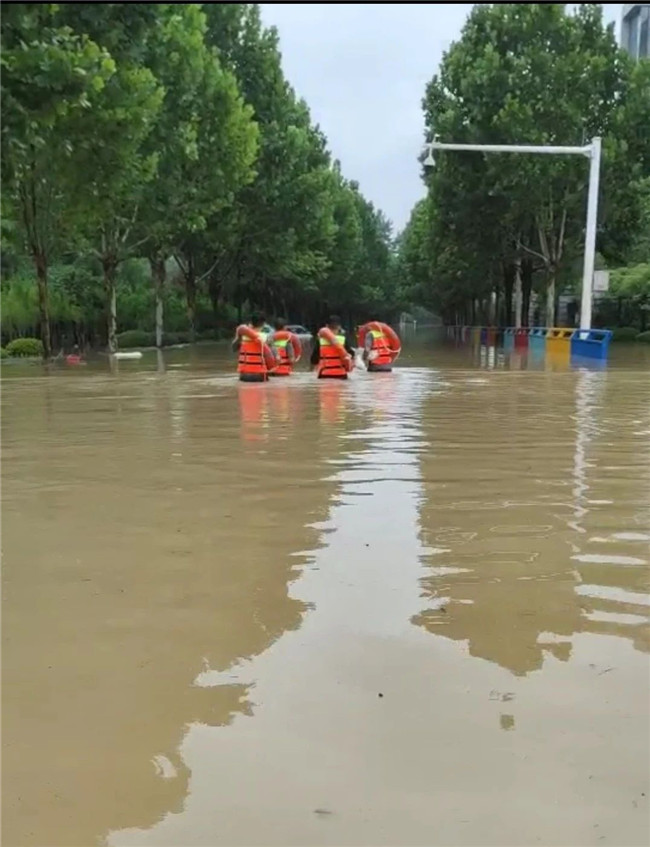 接到消息后,學(xué)校保衛(wèi)處迅速組織力量前往解救被困人員。當(dāng)營救車輛行駛至鄭開大道與楊橋大道交叉口時(shí),積水已經(jīng)達(dá)到1米以上。營救小隊(duì)當(dāng)即決定冒險(xiǎn)涉水前行,解救被困人員。