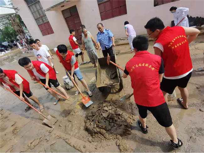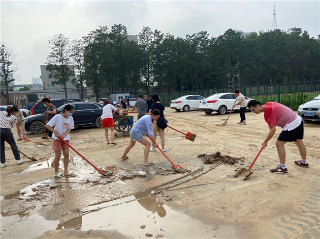 在這緊急關(guān)頭,黨員先鋒率先站了出來,帶領(lǐng)三臨床學(xué)生積極自救,沖在了志愿服務(wù)的第一線。各黨支部也帶領(lǐng)同學(xué)們合力對(duì)宿舍及樓道內(nèi)的積水、淤泥進(jìn)行清掃,為大家清出一條出入通道。