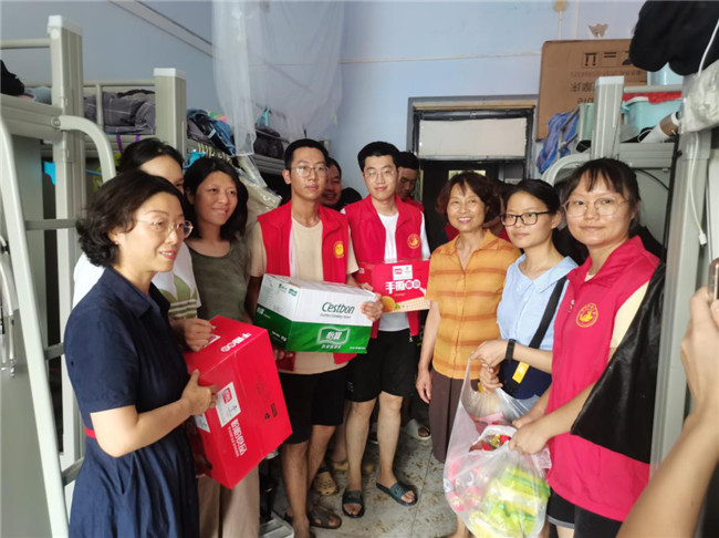 災(zāi)難無情人有情,學(xué)校的關(guān)懷始終在第一線。7月22日,新校區(qū)交通剛剛恢復(fù),校黨委研工部、研究生院在蔣時(shí)紅部長(zhǎng)的帶領(lǐng)下,組成慰問隊(duì)深入三臨床研究生宿舍,探望慰問了受洪澇影響的研究生,并為同學(xué)們帶來了急需的水和食物,并深入了解學(xué)生學(xué)習(xí)、生活及思想狀況,鼓勵(lì)同學(xué)們積極應(yīng)對(duì)。