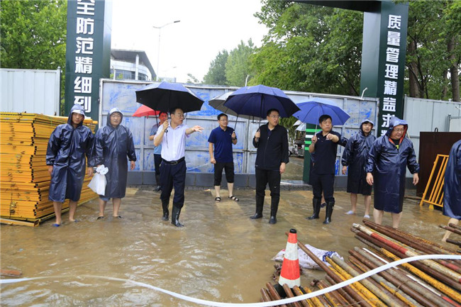 保安全降損失。7月20日,降雨持續(xù)增大;21日,暴雨仍在繼續(xù),鄭州市多次發(fā)布暴雨紅色預警;交通受阻、信號中斷、電壓不穩(wěn)等不良情況陸續(xù)發(fā)生,工地防汛壓力驟然加大。面對洪水肆虐,基建人聞“汛”而動,全員堅持工地一線,全面排查防汛隱患風險點,以最嚴措施、最嚴紀律、最嚴作風,全力做好在建工程防汛安全。在建工程現(xiàn)場,依照防汛應急響應的方案,全面投入防汛工作。組織人員關停了所有機器,關閉非必要電源,用雨布遮蓋用電設備,嚴防漏電事故發(fā)生;建立防汛墻,防止雨水灌入低洼區(qū)域;選派人員前往樓頂,及時疏通排水口,確保排水順暢;地下室放置多臺潛水泵、場地外開挖排水溝進行引流,24小時不間斷抽排雨水。通過一系列措施,最大限度降低建設損失,保證工程基坑和主體結構安全,確保無安全事故發(fā)生。
