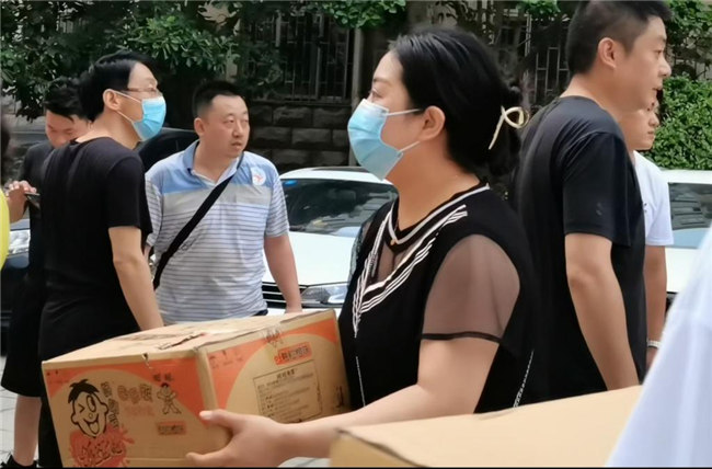 7月23日,大雨初歇,該校藝術(shù)學(xué)院黨委書記韋楊建,柴占紅、藺麗君老師,圖書館何會科長,招生辦袁保華科長,人事處孫鋼燁科長等自發(fā)到鄭州市慈善總會、鄭州市委黨校等處幫忙搬運救災(zāi)物資,他們和近百名志愿者一道,不畏辛勞,齊心協(xié)力,以最快的速度將上千件物資安全裝卸完畢。