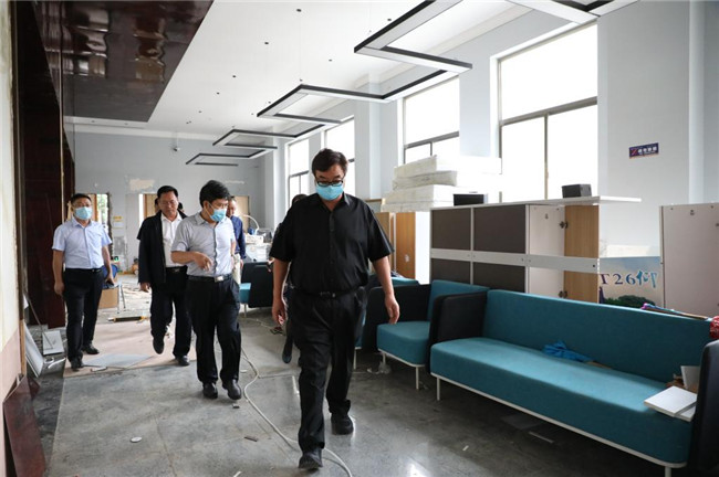 匯報(bào)會(huì)后,張寶柱一行深入該校藝術(shù)樓、發(fā)熱隔離區(qū)、書(shū)望書(shū)院、南湖等地,實(shí)地查看該校災(zāi)后重建、疫情防控、開(kāi)學(xué)準(zhǔn)備情況。