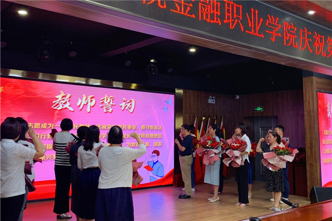 會(huì)上,該院新進(jìn)教授、博士等教職工以短片《我們相聚在鄭財(cái)院》的形式與大家見面問好。圍繞學(xué)院“三次跨越”,教師代表獻(xiàn)上了詩朗誦《我和鄭財(cái)院》、歌曲《中國(guó)教師》。青年教師張薩作為教師代表分享了從教以來的體會(huì)和收獲,老教師代表趙金生帶領(lǐng)廣大教師重溫了教師誓詞。
