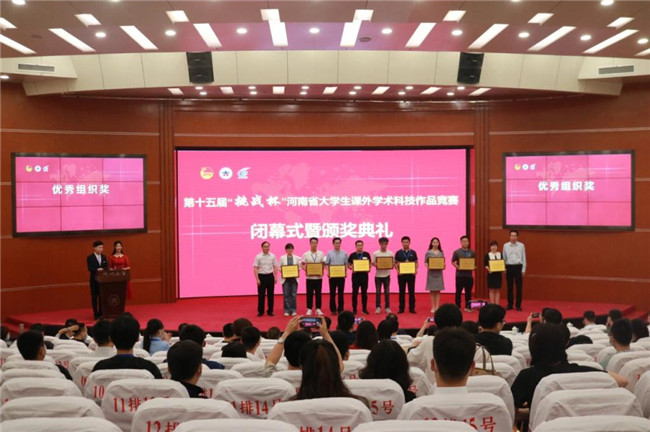 除國賽取得新突破外,在今年的第十五屆“挑戰(zhàn)杯”河南省大學(xué)生課外學(xué)術(shù)科技作品競賽中,該校參賽師生的表現(xiàn)也十分亮眼。共有17項參賽作品獲獎,其中特等獎1項,一等獎2項,二等獎3項,三等獎11項,劉擁軍、高金宇等9名教師獲評“優(yōu)秀指導(dǎo)教師”稱號,該校被授予“優(yōu)秀組織獎”,成績再創(chuàng)歷史新高!