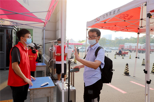 為迎接第一批學(xué)生安全有序返校,信陽農(nóng)林學(xué)院安排志愿者在南大門核驗返校學(xué)生身份、健康碼、行程碼、核酸檢測證明,并進行體溫檢測、行李消殺等入校程序;學(xué)校租用校內(nèi)擺渡車,免費幫學(xué)生托運行李。從學(xué)校大門交通指引、人工通道,到校內(nèi)擺渡車接駁點、宿舍接待處,各部門工作人員、志愿者們都堅守在各自的工作崗位上,各項工作開展井然有序。
