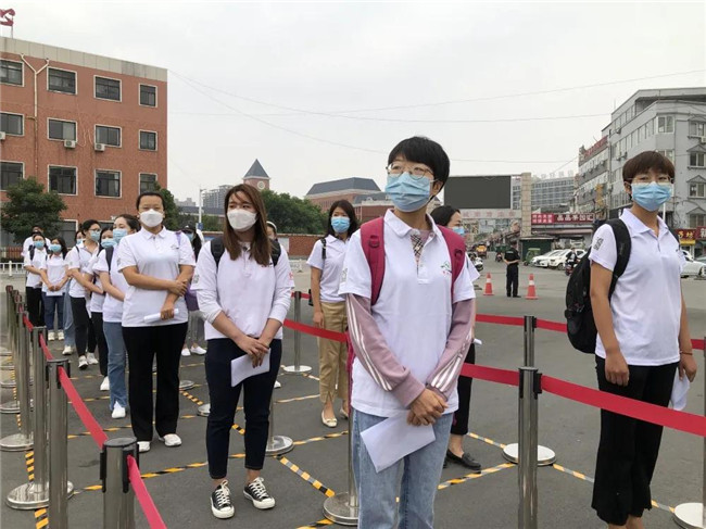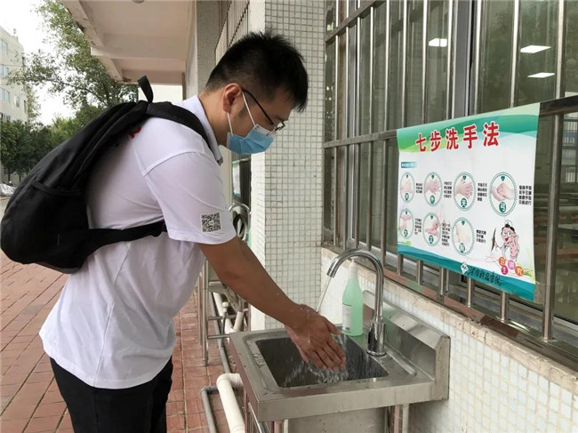 學(xué)校提前對教室進行打掃、通風(fēng)及消殺工作。學(xué)生在教學(xué)樓前間隔1米進行排隊,檢查無異議之后,學(xué)生經(jīng)過消毒進入教學(xué)樓。
