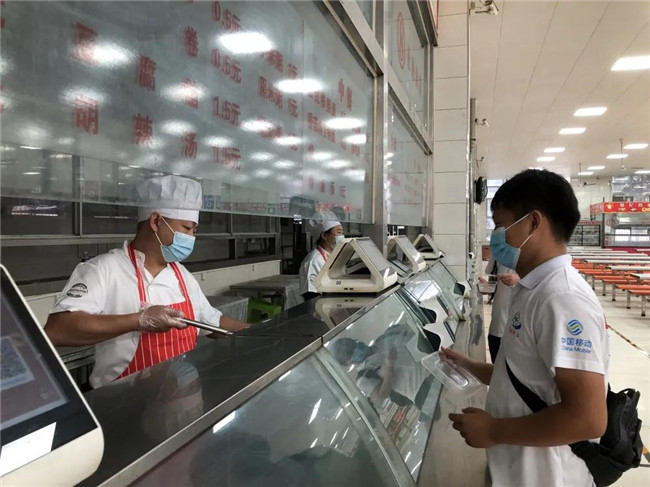 在餐廳北門口設(shè)置測溫點,安排專人負(fù)責(zé)維持餐廳秩序。學(xué)生經(jīng)洗手、測溫、消毒后有序從第一餐廳北門進入,進入餐廳后學(xué)生按地面標(biāo)識線,沿同一方向順序移動,購買餐食后有序從東門出餐廳。