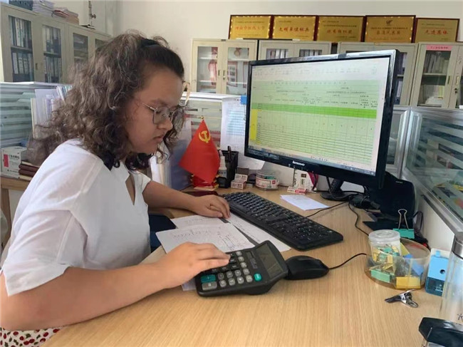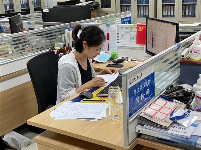 學生處老師認真統(tǒng)計數(shù)據(jù)