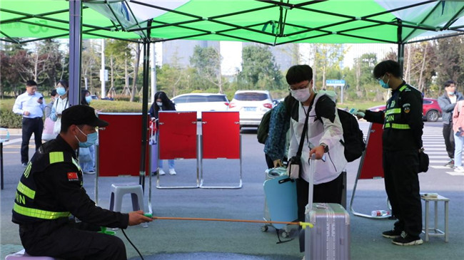 校黨委書記別榮海等校領導現(xiàn)場指導學生返校