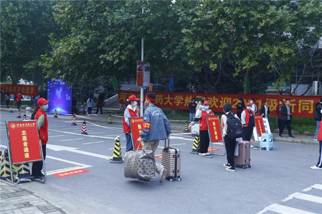 今年,由于疫情防控的需要,河南中醫(yī)藥大學做了最充分的準備,采取了最嚴格的防疫措施,堅持以分批錯峰、優(yōu)化流程、安全有序為原則,學工人員們多措并舉,精心準備,筑起三道屏障,在保障校園安全防疫的情況下,以最真摯、飽滿的熱情,迎接學生返校和2021級小萌新的到來。
