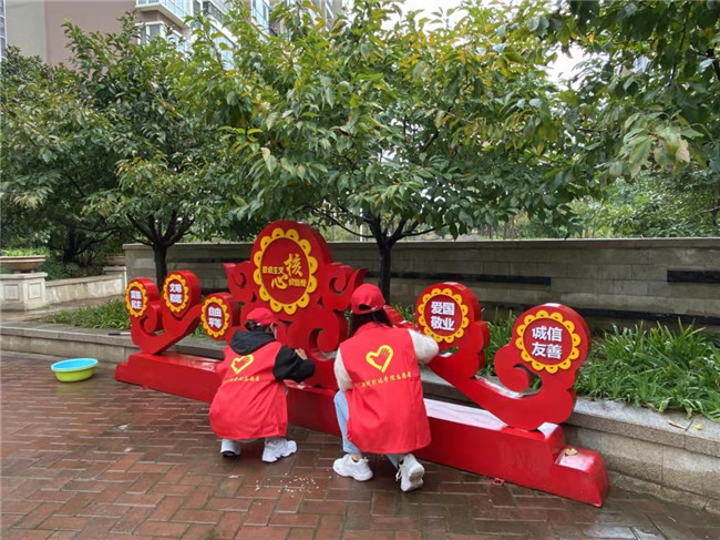 當(dāng)天上午,該校師生志愿者乘坐校車早早來(lái)到小區(qū),按照分組迅速投入工作。大家身穿紅色志愿者服,做好個(gè)人防護(hù),或分發(fā)問(wèn)卷,宣傳講解社會(huì)主義核心價(jià)值觀、創(chuàng)文知識(shí),或手拿鏟子、抹布、笤帚等工具認(rèn)真清掃垃圾和小廣告、擦拭公益廣告欄……雖有冷風(fēng)陣雨,但大家工作效率不減,服務(wù)熱情不退,小區(qū)面貌隨之煥然一新。
