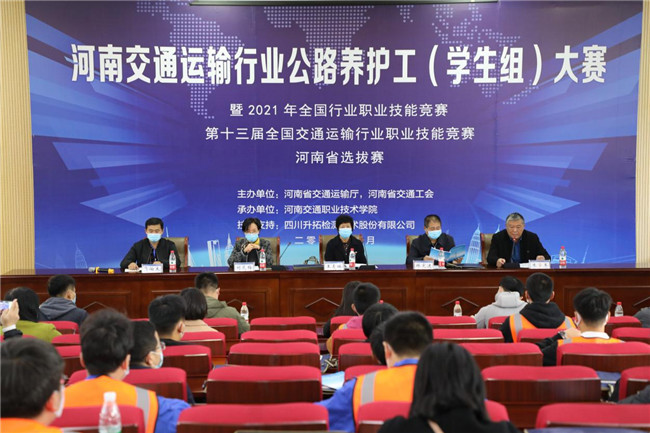 21日上午,河南交通運(yùn)輸行業(yè)公路養(yǎng)護(hù)工(學(xué)生組)大賽在河南交院舉行開(kāi)幕式。河南省交通運(yùn)輸廳人事教育處一級(jí)調(diào)研員王麥娥、河南省交通工會(huì)一級(jí)調(diào)研員林憲進(jìn)、河南交院副校長(zhǎng)劉芝梅、河南交院工會(huì)主席朱學(xué)軍、河南省交通工會(huì)主任科員肖巍等出席開(kāi)幕式。