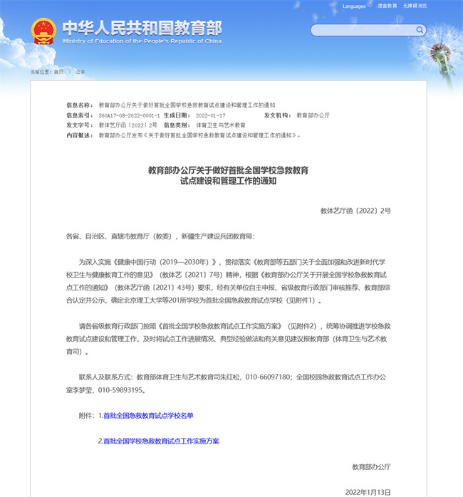 河南交通職業(yè)技術(shù)學院入選首批全國急救教育試點學校