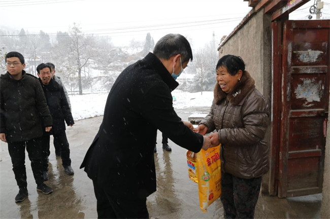 “去年收成怎么樣?”“最近身體怎么樣?”“家里還有什么困難”……迎著雪花,施院長一行將米、面、油等慰問品送到村“五保”戶、“低保”戶、大病戶和困難殘疾戶家中,并致以新春祝福和誠摯問候。詳細(xì)了解他們在醫(yī)療、生活等方面遇到的實際困難,并鼓勵他們要勇于面對逆境,敢于戰(zhàn)勝困難,相信在黨和政府的關(guān)懷下,生活一定會越來越美好。