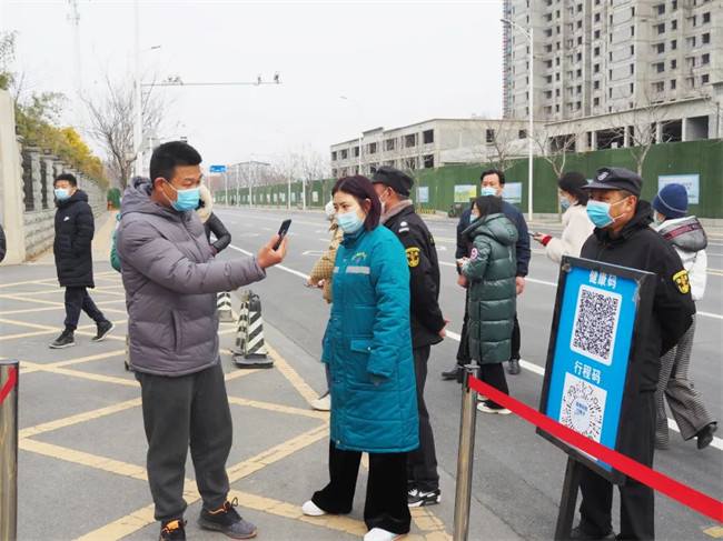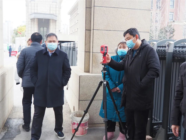 宿舍樓前依次檢測體溫