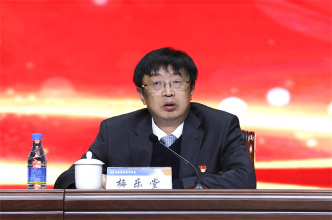 梅樂堂作了題為《實施“三項計劃”,打造“四個高地”,為提升我校職業(yè)教育質(zhì)量和層次而努力奮斗》的工作報告。他總結(jié)了學(xué)校黨史學(xué)習(xí)教育、“雙高計劃”建設(shè)、“提質(zhì)培優(yōu)”工作、教育教學(xué)、技能大賽、就業(yè)創(chuàng)業(yè)、合作交流、服務(wù)保障、疫情防控等方面的成績。他指出了今年的工作重點,一是以“能力作風(fēng)建設(shè)年”為抓手,推動學(xué)校高質(zhì)量發(fā)展;二是把握三項重點工作,緊盯目標(biāo)抓好落實;三是深入開展三大計劃,完成績效目標(biāo)建設(shè);四是著力打造四個高地,助推技能河南建設(shè);五是聚焦十項重點任務(wù),精準(zhǔn)發(fā)力提質(zhì)增效。他要求,全校上下要以昂揚(yáng)的激情、奮斗的姿態(tài)、堅韌的意志和務(wù)實的作風(fēng),為學(xué)校職業(yè)教育質(zhì)量和層次提升而努力奮斗。