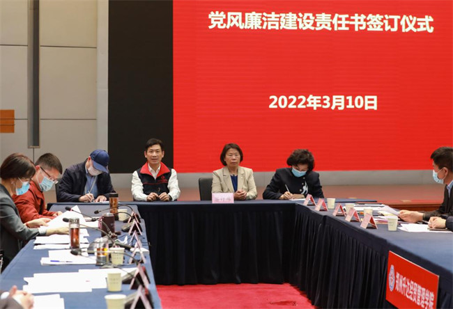 校領(lǐng)導(dǎo)雷霆、郭愛先和張金安分別與班子成員代表、行政部門負責(zé)人代表、教學(xué)單位黨政負責(zé)人代表簽訂了《黨風(fēng)廉政建設(shè)責(zé)任書》。