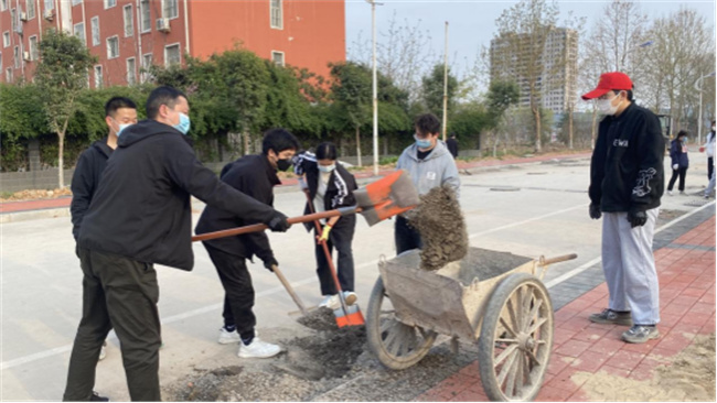 受疫情影響,校園道路改造工程暫停,地磚、沙石堆積路面導(dǎo)致部分道路堵塞。為方便師生通行,排除安全隱患,土木建筑工程學(xué)院組織師生利用專(zhuān)業(yè)技能,對(duì)南校區(qū)操場(chǎng)附近和主教學(xué)樓東側(cè)兩處路面分別進(jìn)行了拆除重鋪和路面清理,恢復(fù)了暢通潔凈的安全道路。