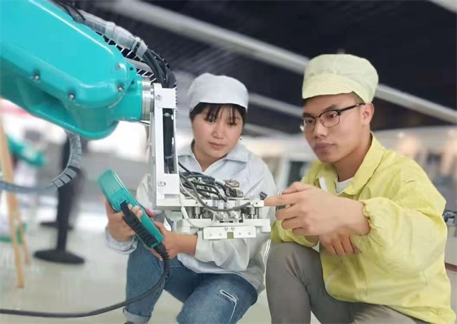 “首先是老師不一樣。我們學(xué)校的老師都是在富士康產(chǎn)線上歷練過的,都有工廠生產(chǎn)經(jīng)驗(yàn)。另外,教室不一樣。不像原來的課堂都是排排坐,我們上課的教室就是產(chǎn)線的樣子。”王林河說,自己學(xué)的技能就是企業(yè)生產(chǎn)的流程,課堂上大家還會(huì)分工合作,進(jìn)行小組辯論。