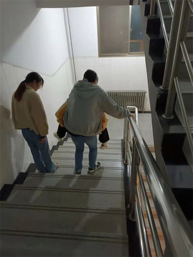 “導(dǎo)員,我下半身動(dòng)不了了!”,4月10日早上7點(diǎn),建筑工程學(xué)院一名學(xué)生向輔導(dǎo)員緊急求助。輔導(dǎo)員楊靜老師接到電話后,第一時(shí)間出現(xiàn)在學(xué)生宿舍?吹綄W(xué)生半癱在床鋪上,雙腿沒有知覺,楊靜老師立刻叫來班長(zhǎng)和宿管,背起學(xué)生送往健康中心。在此過程中,宿管和班長(zhǎng)輪流背著學(xué)生,楊靜老師一直堅(jiān)持在身后托著學(xué)生,謹(jǐn)防學(xué)生掉落。到達(dá)健康中心后,經(jīng)學(xué)生描述和校醫(yī)初步診斷為“缺鉀癥”。得知情況后,楊老師立刻與學(xué)生家長(zhǎng)取得聯(lián)系,在醫(yī)生和家長(zhǎng)的囑咐后,楊靜老師照顧學(xué)生服完藥,注意休息,學(xué)生的雙腿慢慢恢復(fù)。事后學(xué)生感動(dòng)的說:“楊老師第一時(shí)間能到我宿舍并將我送至校醫(yī)院,讓我在慌張中慢慢安心下來,在他的陪伴下,我緊張的情緒得到了有效的緩解,并讓我感到非常的溫暖”。