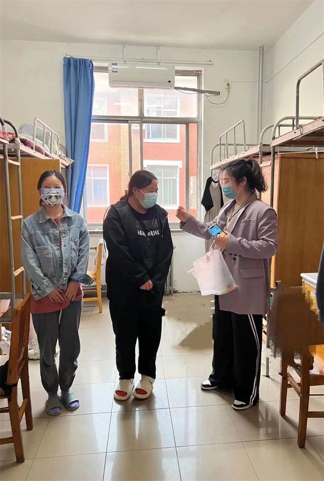 管控以來,金貿(mào)學(xué)院輔導(dǎo)員團(tuán)隊(duì)克服種種困難,返校投入到疫情防控工作中。輔導(dǎo)員杜留荷老師,因?qū)W校疫情防控工作形勢(shì)嚴(yán)峻,一個(gè)多月沒有回過家,除管理好自己所帶班級(jí)的學(xué)生外,還勇挑重?fù)?dān),主動(dòng)承擔(dān)金貿(mào)學(xué)院整體核酸檢測(cè)的協(xié)調(diào)工作。輔導(dǎo)員曾婧婧老師懷孕7個(gè)月,接到返校指令后,不顧身體不便,到校后立即投入到巡視宿舍、組織核酸檢測(cè)等工作中,學(xué)院領(lǐng)導(dǎo)多次勸說她注意身體,曾老師仍堅(jiān)持在最前線。輔導(dǎo)員常海龍老師,小女兒剛滿兩個(gè)月,收到學(xué)校返校指令,沒有半分猶豫,沖在了學(xué)校疫情防控各項(xiàng)工作的第一線,當(dāng)問到他是否想念襁褓中的女兒時(shí),常老師果斷答道,“特殊時(shí)期,學(xué)校需要,不能顧慮這些”;輔導(dǎo)員李珺老師在深入宿舍過程中,一名女生突發(fā)低血糖癥狀,呼吸困難,無法站立,李珺老師毫不猶豫將其從宿舍背到了健康中心,并為她買了營(yíng)養(yǎng)品,學(xué)生在李老師的悉心照顧下逐漸好轉(zhuǎn)。