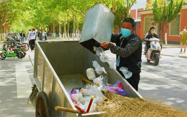 校園封閉管理初期,校園勞動(dòng)教育工作按下暫停鍵,校園衛(wèi)生維護(hù)壓力增大。關(guān)鍵時(shí)刻學(xué)務(wù)處勞動(dòng)衛(wèi)生科變通工作方法,帶領(lǐng)140名勞動(dòng)小組長(zhǎng)轉(zhuǎn)換角色,扛起掃把,勇于承擔(dān)管控期間校園衛(wèi)生,他們成為校園疫情防控重要的支撐力量。此外,家住寶相寺的清潔工胡子亮、胡大軍收到學(xué)校管控的消息,主動(dòng)請(qǐng)纓,來不及整理行裝,天不亮即趕往學(xué)校,后續(xù)委托家人把基本生活物品托遞到學(xué)校。“學(xué)校封閉期間,更要?jiǎng)?chuàng)造一個(gè)良好的生活環(huán)境,無非就是多吃點(diǎn)苦,沒什么大不了的。”清潔工胡子亮一邊傾倒著垃圾,一邊說道。他們是達(dá)園最可愛的人,他們始終堅(jiān)守在校園保潔的第一線。