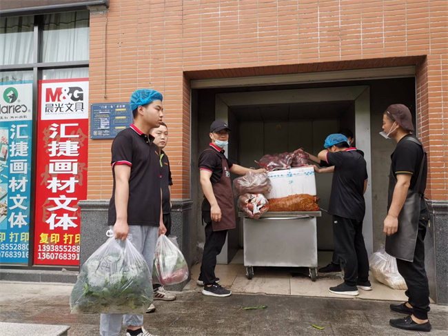 溫馨園餐廳經(jīng)理郝帥領(lǐng)及炊工馮東偉在封控期間堅(jiān)每天持凌晨4點(diǎn)在防疫卡點(diǎn)將糧油、蔬菜、面條及生活必需品轉(zhuǎn)運(yùn)到學(xué)校,確保校內(nèi)食堂原材料正常供應(yīng),用實(shí)際行動(dòng)來(lái)守護(hù)升達(dá)的和諧穩(wěn)定。山水園餐廳楊玉科接到組織返校炊工到崗的通知后,連夜親自開(kāi)車(chē)到龍湖周邊社區(qū)接年齡較大的保潔人員,為保潔人員安置臨時(shí)住宿點(diǎn);細(xì)心的他還專(zhuān)門(mén)采購(gòu)消毒液、酒精為炊工臨時(shí)住宿點(diǎn)消毒、通風(fēng)。