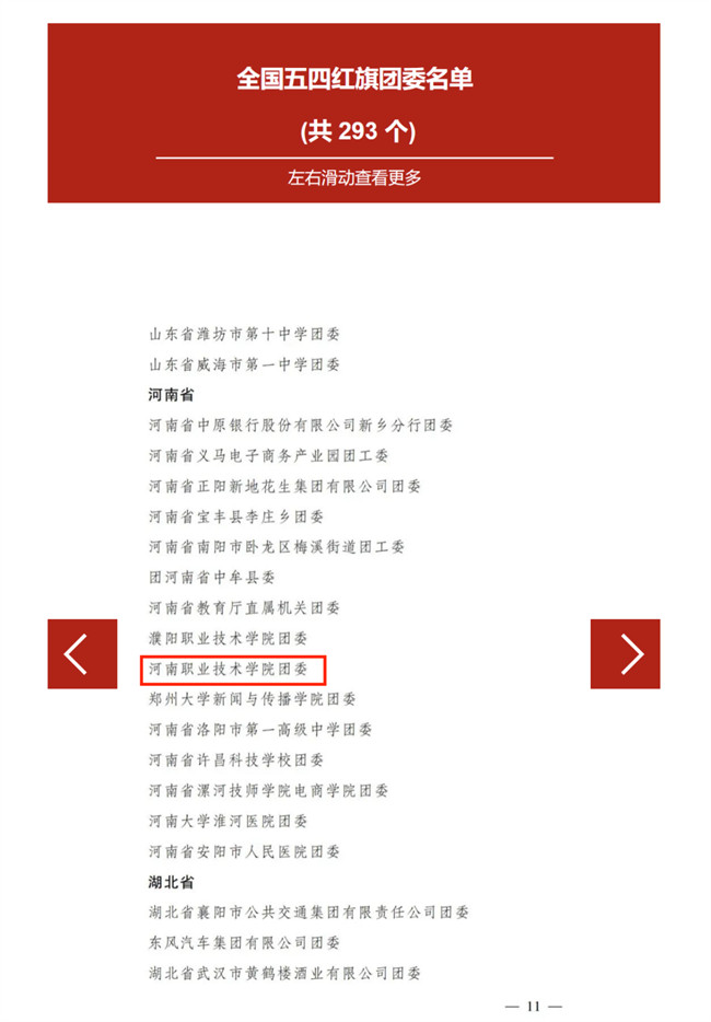 近年來,河南職業(yè)技術(shù)學(xué)院團(tuán)委在校黨委與上級團(tuán)組織的正確領(lǐng)導(dǎo)和關(guān)心支持下,緊緊凝聚在黨的旗幟下,聽黨號(hào)令、跟黨奮斗,奮發(fā)改革、真抓實(shí)干,扎實(shí)穩(wěn)步推進(jìn)各項(xiàng)團(tuán)學(xué)工作,在思想引領(lǐng)、基層組織建設(shè)、社會(huì)實(shí)踐、校園文化、服務(wù)青年、創(chuàng)新創(chuàng)業(yè)等方面成績突出,有力提升了共青團(tuán)的組織力、引領(lǐng)力、服務(wù)力和服務(wù)大局的貢獻(xiàn)度。