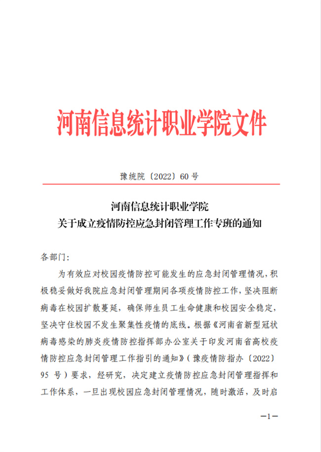 加強(qiáng)組織領(lǐng)導(dǎo),落實(shí)落細(xì)有力度。為充分發(fā)揮黨的領(lǐng)導(dǎo)在疫情防控工作中的最大優(yōu)勢(shì),河南信息統(tǒng)計(jì)職業(yè)學(xué)院黨委成立由黨委書(shū)記、院長(zhǎng)擔(dān)任組長(zhǎng)的疫情防控應(yīng)急封閉管理工作專班。專班下設(shè)9個(gè)應(yīng)急處置專項(xiàng)工作組。為切實(shí)提高應(yīng)急處置工作時(shí)效性和針對(duì)性,河南信息統(tǒng)計(jì)職業(yè)學(xué)院在金水和白沙校區(qū)分別設(shè)置疫情防控指揮小組,學(xué)院領(lǐng)導(dǎo)分組負(fù)責(zé)校區(qū)防控工作,及時(shí)分析形勢(shì)、研判情況,因地制宜精準(zhǔn)調(diào)度疫情應(yīng)對(duì)處置工作,確保防疫和服務(wù)措施落細(xì)落實(shí)。