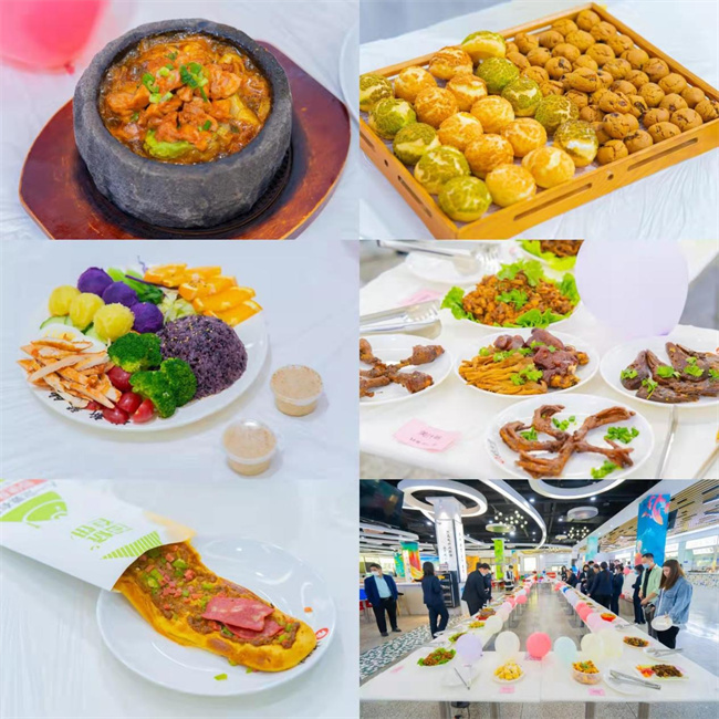 邂逅美食,來一場舌尖上的“宴”遇。根據(jù)新冠肺炎疫情防控要求,同時保證讓更多學生品嘗到美食,伙食科分別設(shè)置山水園、南食堂兩個會場進行人員分流。學校12家餐廳共推介38道美食,達達咖啡等校內(nèi)商業(yè)甜品店共推介13種糕點。本次品鑒會經(jīng)過師生品鑒、投票,最終分別有三道美食及甜品獲評為“最受師生喜愛的美食”。品鑒會上,香氣逼人的上海醬鴨飯、色香味俱全的東北鍋包肉、擺盤精致的茶香牛排;還有受女生追捧的減脂餐、螺螄粉,小巧可人的巧克力奶豆,讓人垂涎三尺的奧利奧提拉米蘇,迷倒萬千學生的網(wǎng)紅“紅絲絨蛋糕”等等,使同學們在品鑒中感受中華美食文化,在品鑒中體味烹飪者的溫暖,在品鑒中習作精美廚藝。