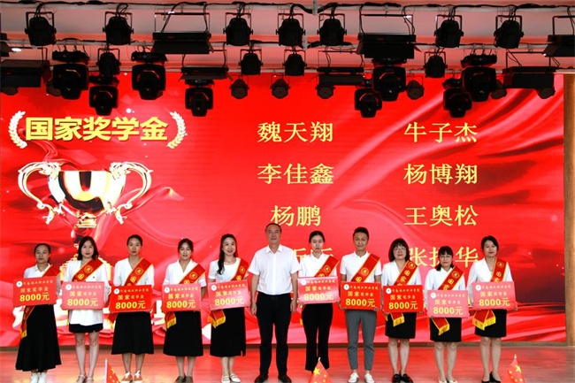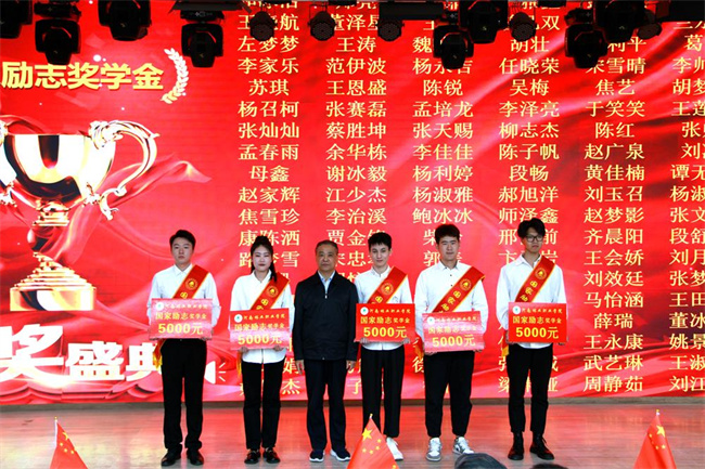 院長(zhǎng)宋宏偉為獲得國(guó)家勵(lì)志獎(jiǎng)學(xué)金的學(xué)生代表頒獎(jiǎng)