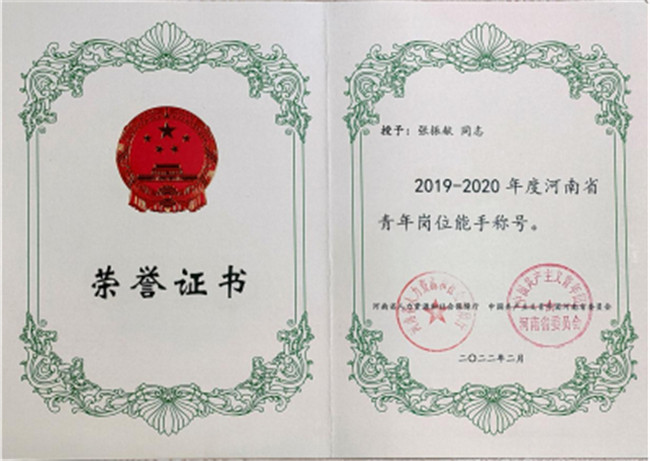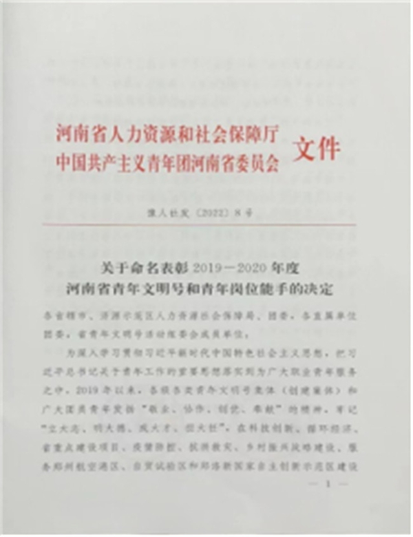 中新河南網(wǎng)6月6日電(李安杰) 近日,河南省人社廳、共青團河南省委聯(lián)合下發(fā)《關(guān)于命名表彰2019-2020年度河南省青年文明號和青年崗位能手的決定》(豫人社發(fā)【2022】8號)。鄭州電力高等?茖W校電氣工程學院張振獻、何永濤兩位教師榮獲“河南省青年崗位能手”稱號。