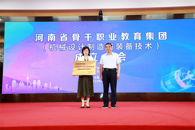 河南省教育廳副廳長陳垠亭為河南機械設(shè)計制造與裝備技術(shù)職業(yè)教育集團(tuán)授牌