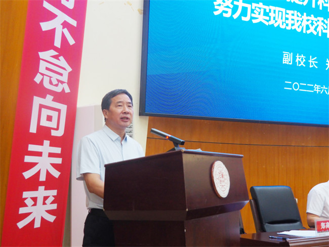 副校長(zhǎng)鄭高飛作了題為《進(jìn)一步提升科技創(chuàng)新能力 努力實(shí)現(xiàn)我?蒲泄ぷ餍驴缭健返目萍脊ぷ鲌(bào)告,報(bào)告總結(jié)了學(xué)校2021年的科技工作取得的成績(jī),對(duì)下一階段的工作進(jìn)行了具體安排。報(bào)告指出,全體師生員工要聚集力量,敢為人先,追求卓越,努力探索科學(xué)前沿,發(fā)現(xiàn)和解決新的科學(xué)問(wèn)題,攻堅(jiān)克難,進(jìn)一步提升科技創(chuàng)新能力,推動(dòng)特色應(yīng)用型本科建設(shè),為地方經(jīng)濟(jì)社會(huì)發(fā)展貢獻(xiàn)“鄭工智慧”。