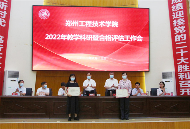 中新河南網(wǎng)6月15日電 為進(jìn)一步落實(shí)省委“能力作風(fēng)建設(shè)年”活動(dòng),深入推進(jìn)“河南省本科高校課堂教學(xué)質(zhì)量提升年專項(xiàng)行動(dòng)”,根據(jù)學(xué)校黨委關(guān)于“能力作風(fēng)建設(shè)年”活動(dòng)的總體安排,6月13日,鄭州工程技術(shù)學(xué)院在英才校區(qū)明德樓A座學(xué)術(shù)報(bào)告廳召開(kāi)了2022年教學(xué)科研暨合格評(píng)估工作會(huì)。全體校領(lǐng)導(dǎo)、學(xué)校各單位負(fù)責(zé)人、各學(xué)院黨政負(fù)責(zé)人、教學(xué)副院長(zhǎng)(教學(xué)臨時(shí)負(fù)責(zé)人)、教學(xué)科研辦公室主任、教務(wù)處、科技處、評(píng)估督導(dǎo)處全體人員、獲獎(jiǎng)教師代表等參加了會(huì)議。會(huì)議由黨委副書(shū)記、工會(huì)主席蘇煒主持。