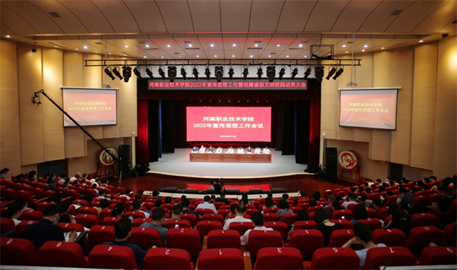 中新河南網(wǎng)6月17日電(呂洛樂) 6月16日下午,河南職業(yè)技術(shù)學院2022年宣傳思想暨創(chuàng)建省級文明校園動員大會在音樂廳召開。大會對學校近年來宣傳思想和精神文明建設工作進行回顧總結(jié),并對2022年宣傳思想和省級文明校園創(chuàng)建工作進行安排部署。校領(lǐng)導、學校副處級及以上干部,全體思政課教師、輔導員、精神文明專干和新聞通訊員參會。黨委書記李桂貞、校長梅樂堂分別主持創(chuàng)建省級文明校園動員會和宣傳思想工作會。