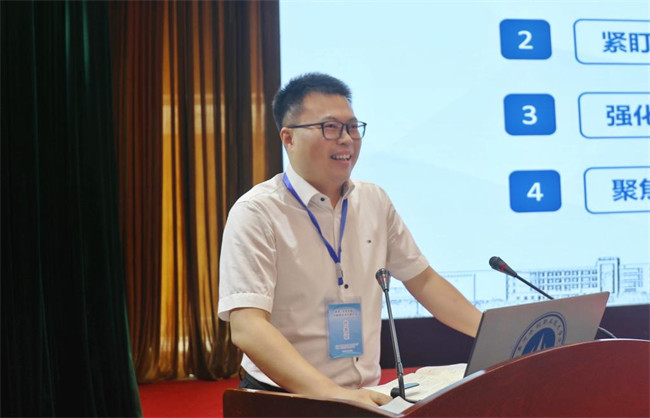 校黨委副書記、校長(zhǎng)胡昊介紹學(xué)校“雙高計(jì)劃”建設(shè)工作的主要進(jìn)展