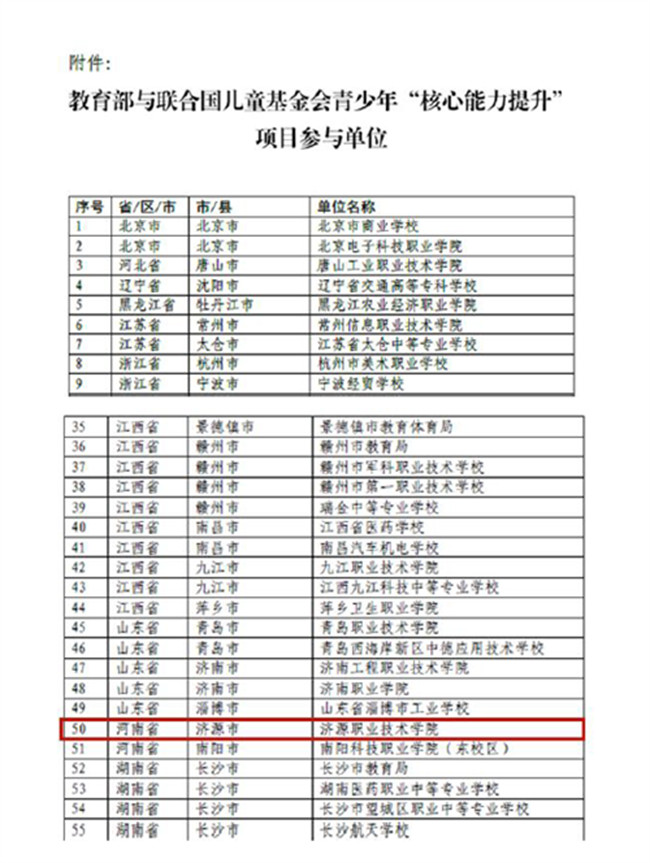 濟源職院入選教育部與聯合國兒童基金會項目參與單位
