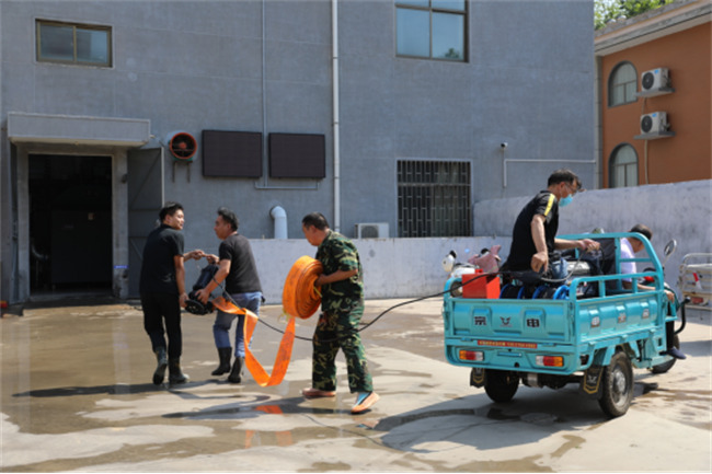 此次演練活動以暴雨造成學校南鍋爐房、南配電房、學生宿舍13號樓,南湖運動場涵洞出現(xiàn)不同程度的積水內澇為背景。演練開始后,全體演練人員根據(jù)事先制定的演練方案,迅速攜帶救援裝備趕赴指定地點進行抗洪搶險演練。演練過程中,全體參演隊員快速反應,利用大型設備清淤疏通、抽水泵等小型設備及時抽排積水、裝填搬運沙袋保護重點區(qū)域,充分展現(xiàn)出關鍵時刻挺身而出的責任擔當,圓滿完成各項應急演練科目。