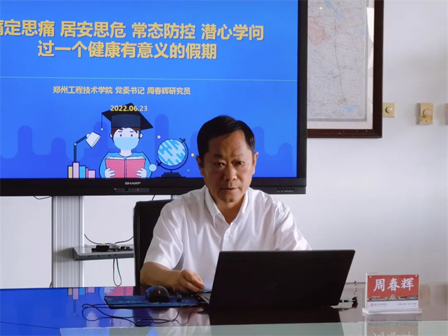 周春輝講到,居安思危,汲取經(jīng)驗(yàn)教訓(xùn),更要擔(dān)當(dāng)有為,加強(qiáng)常態(tài)防控。中華民族歷史上經(jīng)歷過很多磨難,但從來沒有被壓垮過,而是愈挫愈勇,不斷在磨難中成長、從磨難中奮起。周春輝希望,同學(xué)們要深刻認(rèn)識(shí)疫情防控存在的諸多不確定性,時(shí)刻繃緊疫情防控這根弦,暑期在家也要嚴(yán)格遵守屬地和學(xué)校疫情防控要求,提高風(fēng)險(xiǎn)意識(shí),做好個(gè)人防護(hù)。