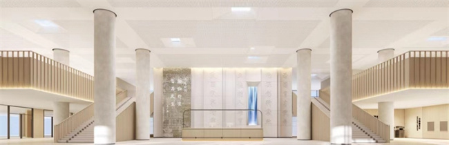 王新奇結合對國內外先進圖書館調研考察的經驗、升達發(fā)展的歷程、未來使用的需求,提出大廳的設計創(chuàng)意,讓文獻和環(huán)境相映生輝,把圖書館的厚重歷史感和先進科技相融合。他對圓柱造型、Logo燈光、材料質量也都提出了明確要求。