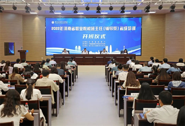 河南省教育廳職成教處二級調研員張家成、河南省教育科學規(guī)劃與評估院院長成光琳、鄭州電力高等?茖W校黨委書記楊義波、校長楊建華出席開班儀式,來自全省高職院校的120名輔導員代表參加儀式。