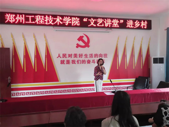 在接下來(lái)開展的“文藝講堂”活動(dòng)中,學(xué)校音樂(lè)舞蹈學(xué)院院長(zhǎng)馬宏霞帶著李金玲和曹永謙兩位教授和段東村的群眾一起進(jìn)行文化交流。身為常派弟子的李金玲為大家表演了《祖國(guó)的大建設(shè)一日千里》《將姐姐和弟弟手兒拉緊》《花木蘭羞答答施禮拜上》,二胡名家曹永謙為大家演奏了《賽馬》《洪湖水浪打浪》《南泥灣》等緊扣時(shí)代發(fā)展主題的文藝節(jié)目,有溫度地傳遞了黨和政府的聲音和關(guān)懷,為村民們送上一場(chǎng)精彩的文化大餐。在活動(dòng)開展過(guò)程中,兩位教授還講解了豫劇、二胡的歷史及相關(guān)知識(shí),與村民進(jìn)行了交流互動(dòng);顒(dòng)現(xiàn)場(chǎng)秩序井然,掌聲、歡笑聲此起彼伏。