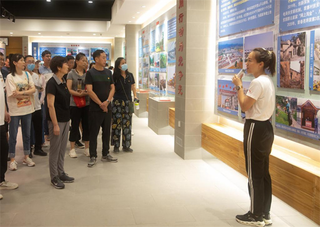 傍晚,黨員們走進輝縣市裴寨社區(qū),參觀了黨建展覽館,了解了裴寨村由土地貧瘠、靠天吃飯的省級貧困山村變?yōu)槿珖拿鞯拿餍谴宓墓廨x歷程,切實體會到了“聽黨話、跟黨走、同創(chuàng)業(yè)、共致富”的裴寨精神和裴春亮同志“鄉(xiāng)親不富誓不休”的為民情懷。