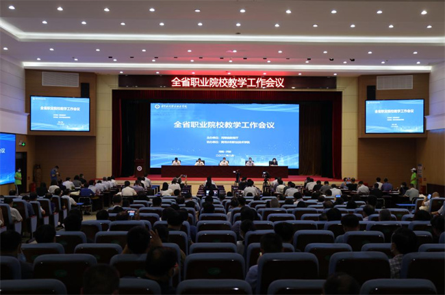 胡昊致辭并分享學(xué)校教學(xué)工作的探索與實(shí)踐。他對(duì)參會(huì)的領(lǐng)導(dǎo)表示熱烈的歡迎,對(duì)職教同仁表示真誠(chéng)的問候。他簡(jiǎn)要介紹了學(xué)校的辦學(xué)歷史、辦學(xué)特色和辦學(xué)成就。他指出,學(xué)校事業(yè)的高質(zhì)量發(fā)展,得益于學(xué)校在“四個(gè)堅(jiān)持、四個(gè)打造”上的探索與實(shí)踐。一是堅(jiān)持立德樹人根本,打造技術(shù)技能人才培養(yǎng)高地。聚焦黃河特色,踐行培根鑄魂使命;聚焦產(chǎn)業(yè)發(fā)展,創(chuàng)新人才培養(yǎng)模式;聚焦學(xué)生需求,深入推進(jìn)“三教改革”。二是堅(jiān)持產(chǎn)業(yè)需求導(dǎo)向,打造專業(yè)集群建設(shè)高地。對(duì)接國(guó)家戰(zhàn)略,構(gòu)建專業(yè)集群體系;對(duì)接產(chǎn)業(yè)升級(jí),豐富專業(yè)集群內(nèi)涵;重塑教學(xué)組織,激發(fā)專業(yè)辦學(xué)活力。三是堅(jiān)持雙師雙能標(biāo)準(zhǔn),打造名匠大師匯聚高地。實(shí)施梯級(jí)培養(yǎng),打造高水平教學(xué)團(tuán)隊(duì);實(shí)施引培并舉,打造高層次人才隊(duì)伍。四是堅(jiān)持“四元同構(gòu)”機(jī)制,打造校企協(xié)同育人高地。創(chuàng)新體制機(jī)制,搭建校企合作平臺(tái);創(chuàng)新運(yùn)行模式,共建現(xiàn)代產(chǎn)業(yè)學(xué)院。他表示,在“創(chuàng)新驅(qū)動(dòng)、科教興省、人才強(qiáng)省”的目標(biāo)任務(wù)驅(qū)動(dòng)下,要立足辦學(xué)特色、發(fā)揮專業(yè)優(yōu)勢(shì),為服務(wù)產(chǎn)業(yè)結(jié)構(gòu)轉(zhuǎn)型升級(jí)和經(jīng)濟(jì)社會(huì)發(fā)展發(fā)揮更大的作用。他希望,各職業(yè)院校共同努力,為職業(yè)教育的高質(zhì)量發(fā)展貢獻(xiàn)“河南智慧”。