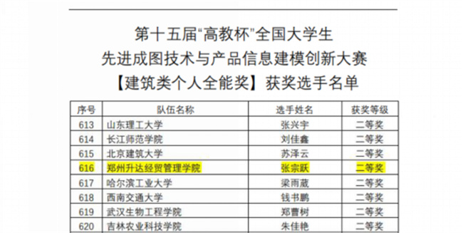 2022年7月30日,第十五屆“高教杯”全國大學(xué)生先進(jìn)成圖技術(shù)與產(chǎn)品信息建模創(chuàng)新大賽全國總決賽在線上舉行,建工學(xué)院2018級(jí)2019級(jí)建筑學(xué)專業(yè)學(xué)生代表學(xué)院參賽。在曹萌萌、張蕾蕾、任小營老師的耐心指導(dǎo)下,不斷夯實(shí)基礎(chǔ),參賽同學(xué)專業(yè)技能有明顯的提高,在全國675所高校,1040支隊(duì)伍,10344名選手參賽大軍中嶄露頭角。