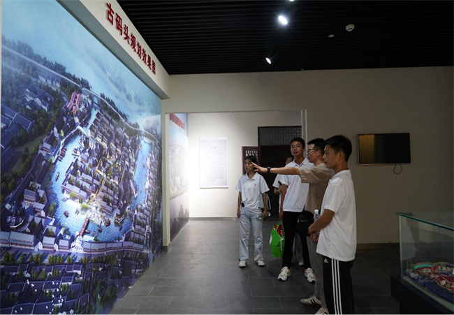 圖為實(shí)踐團(tuán)成員在古鎮(zhèn)沙盤(pán)模型前觀摩,古會(huì)館、古城墻、古城樓相映成輝,猶如一本厚重的歷史古書(shū),一頁(yè)一頁(yè)記錄著中華文明史的發(fā)展,展現(xiàn)著時(shí)代的變遷。王宛玲 攝