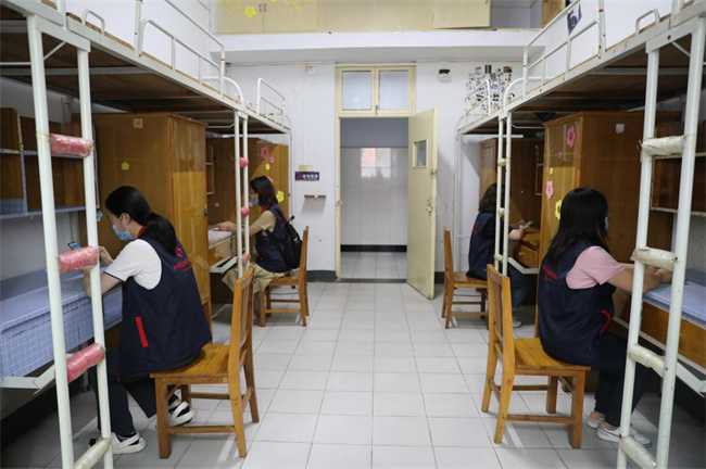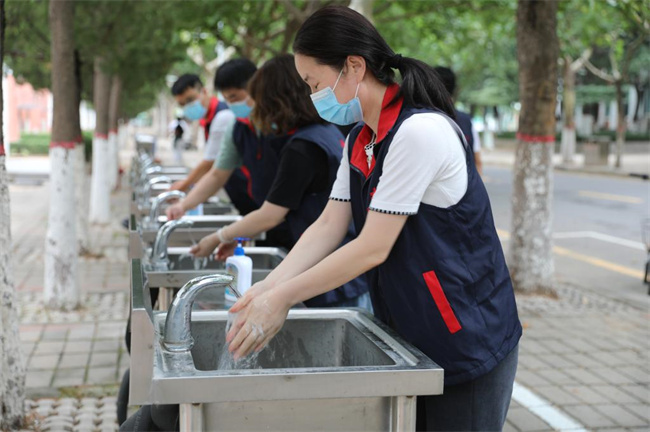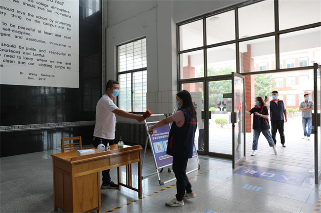 隨后,應急演練嚴格按照秋季學期開學和疫情防控工作要求,分別在學校西大門、學生宿舍13號樓、龍湖食府餐廳、道镕教學樓等處,完整模擬了學生報到入校、入住宿舍、餐廳就餐、教室上課、應急情況處置等場景。參演教職工按照應急演練的路線和要求分工合作、協(xié)同配合,有條不紊開展演練,達到了預期效果。