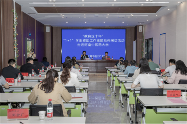據(jù)悉,為迎接黨的二十大,宣傳黨的十八大以來教育改革發(fā)展取得的巨大成就,教育部從2022年8月30日起,圍繞“十八大以來學生資助工作成效”主題,在河南開展“教育這十年”“1+1”學生資助工作主題系列發(fā)布采訪活動。河南中醫(yī)藥大學被教育部和河南省教育廳選定為河南省學生資助工作典型,接受中央和省級媒體記者進行實地采訪。此次全省共遴選了兩所高校、三個縣市,該校是第一站接受采訪展示的單位。